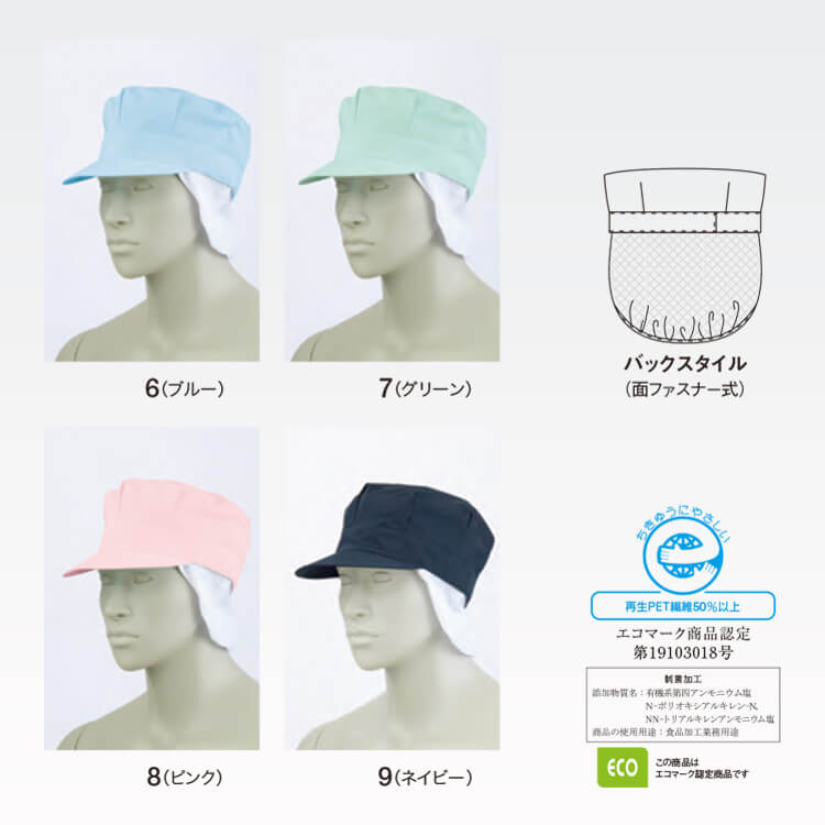食品工場作業着帽子 男女兼用「天メッシュ たれ付き」5色 カラー・詳細