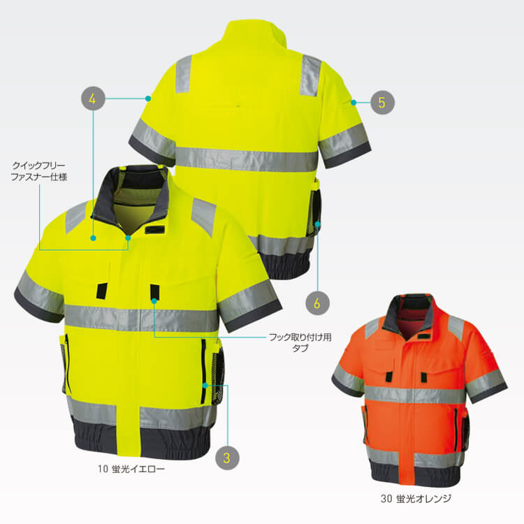 空調風神服用半袖ブルゾン「高視認性安全服 Class2適合」フルハーネス対応 / カラー・詳細