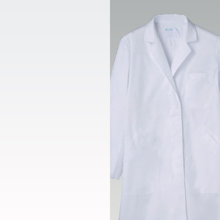 白でも透けが気にならない透け防止 仕様。医療白衣ユニフォームとしての 品位と機能を兼ね備えています。