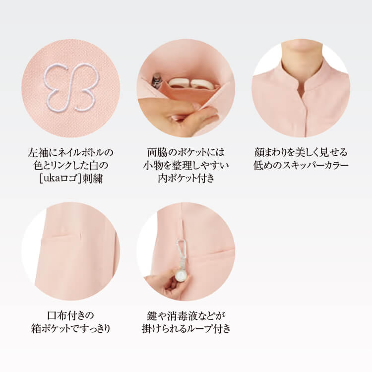 エステ制服チュニック、制菌や透け防止、素材も多数ご紹介