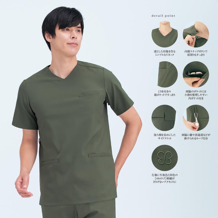医療スクラブ 男女兼用「動きやすいシルエット」ストレッチ/医療白衣ユニフォーム 特徴