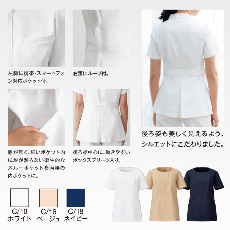 白衣ジャケット半袖 レディース「透け防止」ストレッチ/エステユニフォーム カラー・詳細