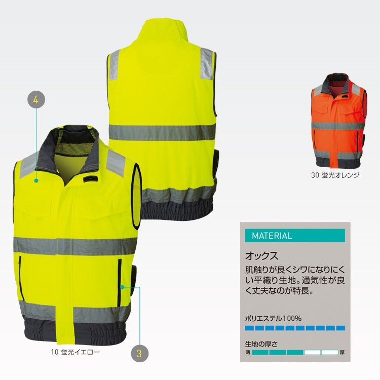空調風神服フルセット「ベスト+ファンバッテリー24V」高視認性安全作業服/ 特徴
