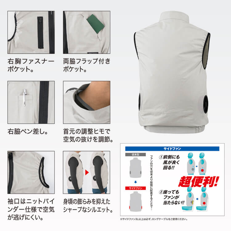 空調服25Vセット「綿100ベスト&ファンバッテリー」サイドファン/ 特徴
