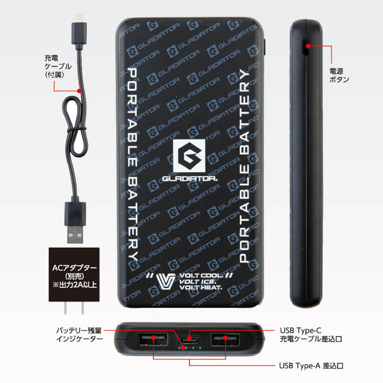 ファン付き作業服 モバイルバッテリー 10,000mAh 熱中症対策