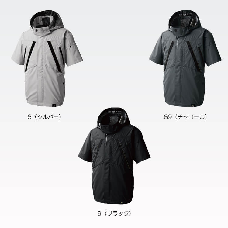 空調風神服24Vセット「フード付きブルゾン半袖&ファンバッテリー」ファン付きウェア/ カラー