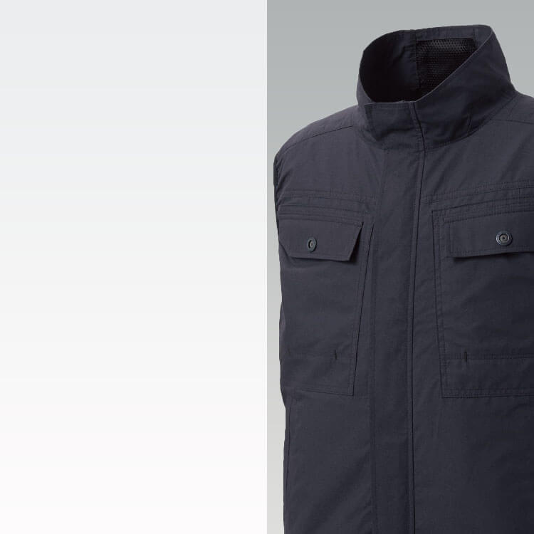綿100%素材で汗を素早く吸収し、 湿度を軽減。軽量で柔らかく、 快適な空調風神服用ベスト。