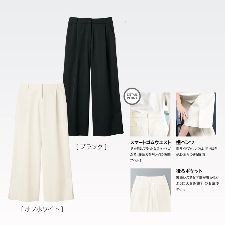 オフィス制服ワイドパンツ「足さばきの良いシルエット」高機能撥水 / ジェーンパッカー カラー・詳細