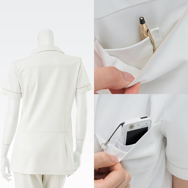 繊維上の細菌増殖を抑制し、衛生 環境を保つエステ制服チュニック。