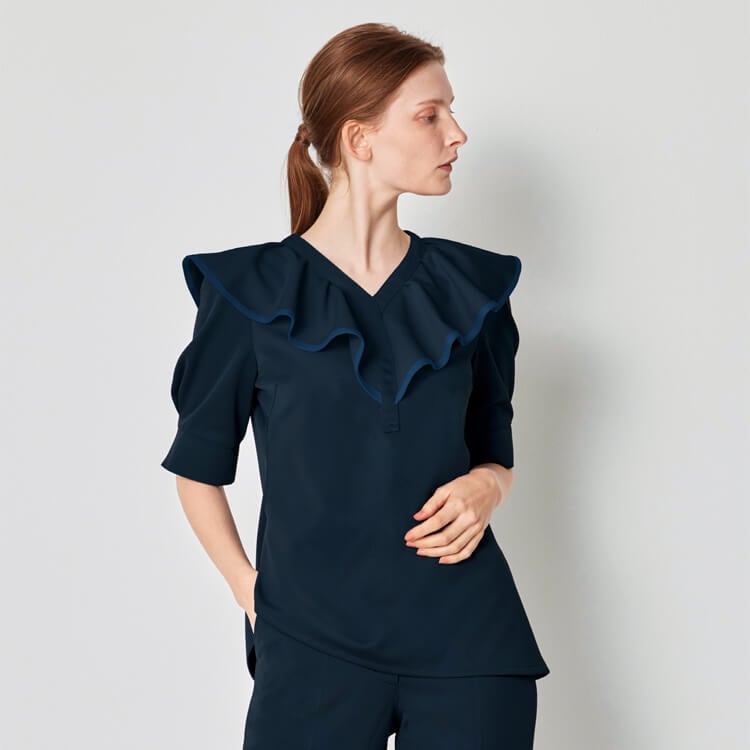 華やかなワッフルカラーが顔周りを明るく見せます。上品で親しみやすい印象を演出するエステサロン制服におすすめチュニックです。ボリューム感のある袖がさりげないポイントとなり、デザインに女性らしいやわらかさをプラス。動きやすさと美しいシルエットを両立。清潔感と華やかさを備えた印象も上がるチュニック制服です。
