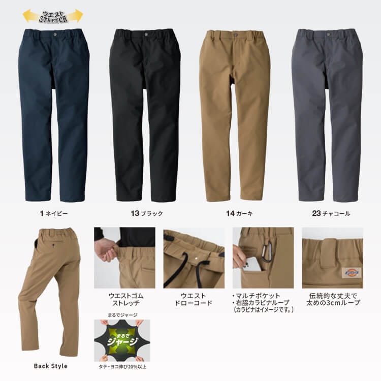 ディッキーズ作業着ズボン 男女兼用「ジャージみたいな作業服パンツ」作業ユニフォーム / カラー・詳細