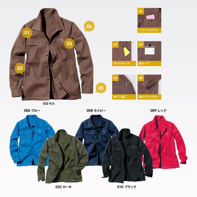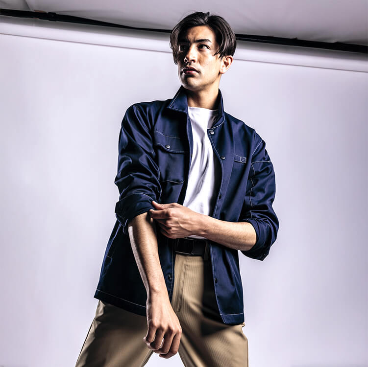 耐久性に優れたTCツイル素材を 使用し、型崩れしにくく快適な 着心地を実現した作業用ジャケット。