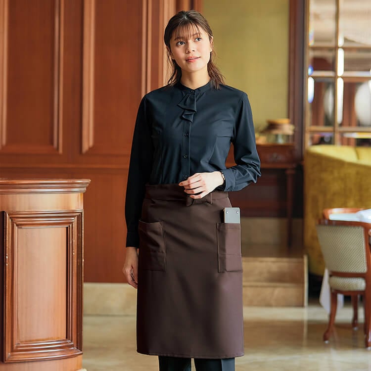 フリルブラウス長袖・オフィスユニフォーム ショールーム制服ブラウス・ホテルユニフォーム・事務服