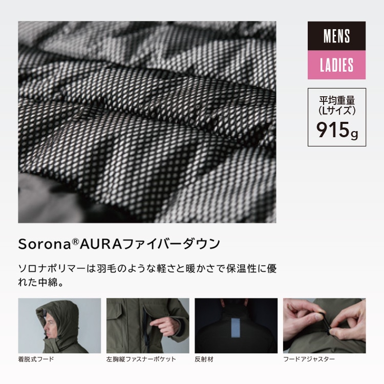 中綿:Sorona?AURAファイバーダウン(ポリエステル100%)