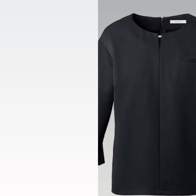 上品な光沢が華やかさを演出する七分袖のプルオーバー。スカートとセットアップすればワンピースのような一体感あるコーディネートも可能です。タテヨコに伸びる2WAYストレッチ素材を採用し、吸汗速乾、抗菌防臭の快適な制服。販売接客業、企業受付業務にもうれしい実用的な機能充実の事務服プルオーバーです。