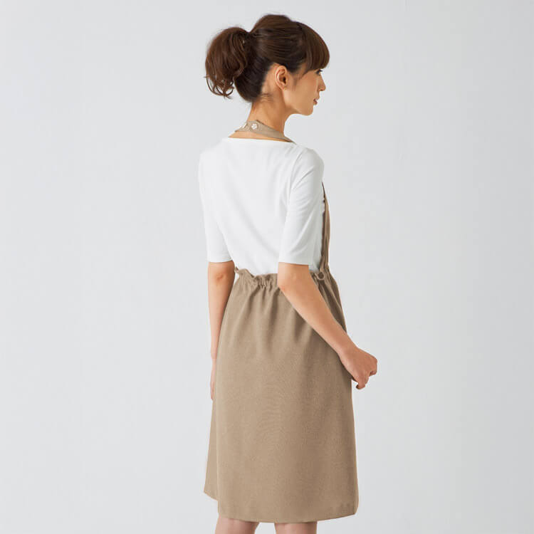 リラクゼーションサロンやエステ制服にぴったりの動きやすくてナチュラルな風合いが魅力。ふんわりソフトな風合いでストレッチ性があり、長時間の着用でも快適な着心地をキープします。お手入れも簡単!シンプルでベーシックなデザインにウエストギャザーがさり気ない華やかさをプラスしたワンピースです。