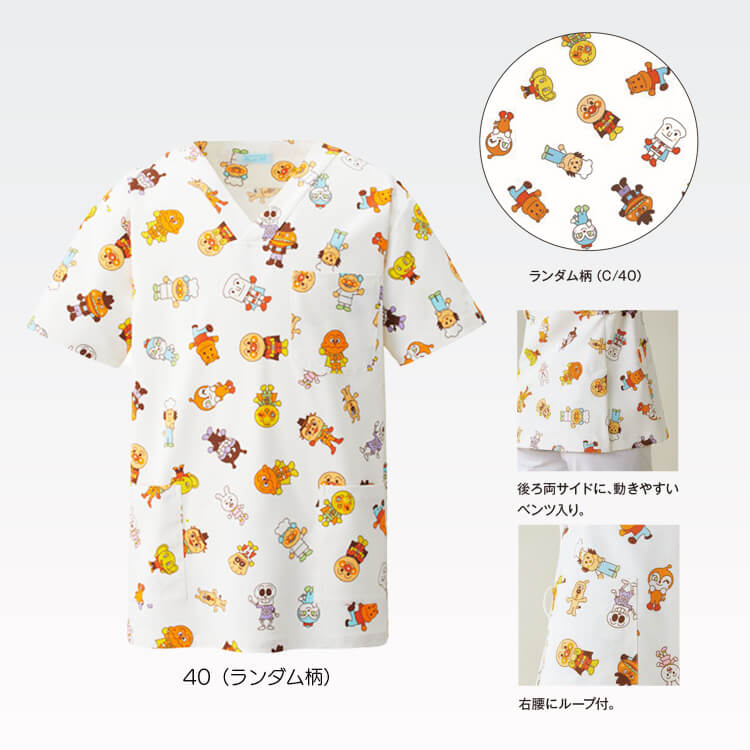 医療スクラブ アンパンマン柄 男女兼用「制電&制菌」小児科 / 病院ユニフォーム 特徴