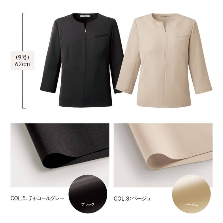 柔らかなストレッチ素材とクルーネックが上品な印象の接客制服におすすめプルオーバー。アクセサリーのように見えるファスナーが胸元をさりげなく華やかに演出。防汚・撥水の高機能素材で、水や皮脂の汚れも気にせず着られるオフィスユニフォームです。