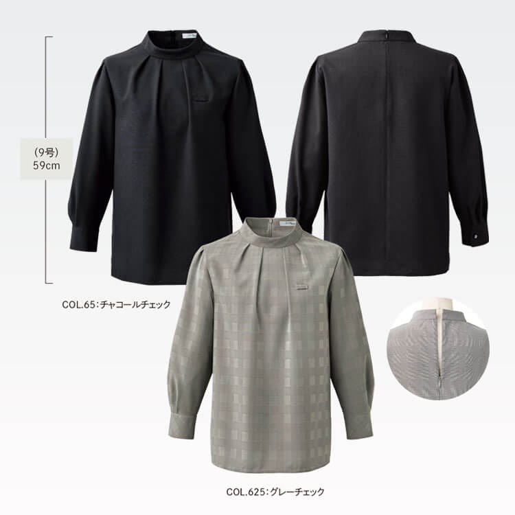 enjoy事務服・NWB075・スタンドカラーブラウス・オフィス・接客・店員制服・ストレッチ オフィスユニフォーム・スタンドカラーブラウス・カラー展開・チャコール・グレー・ショールーム制服