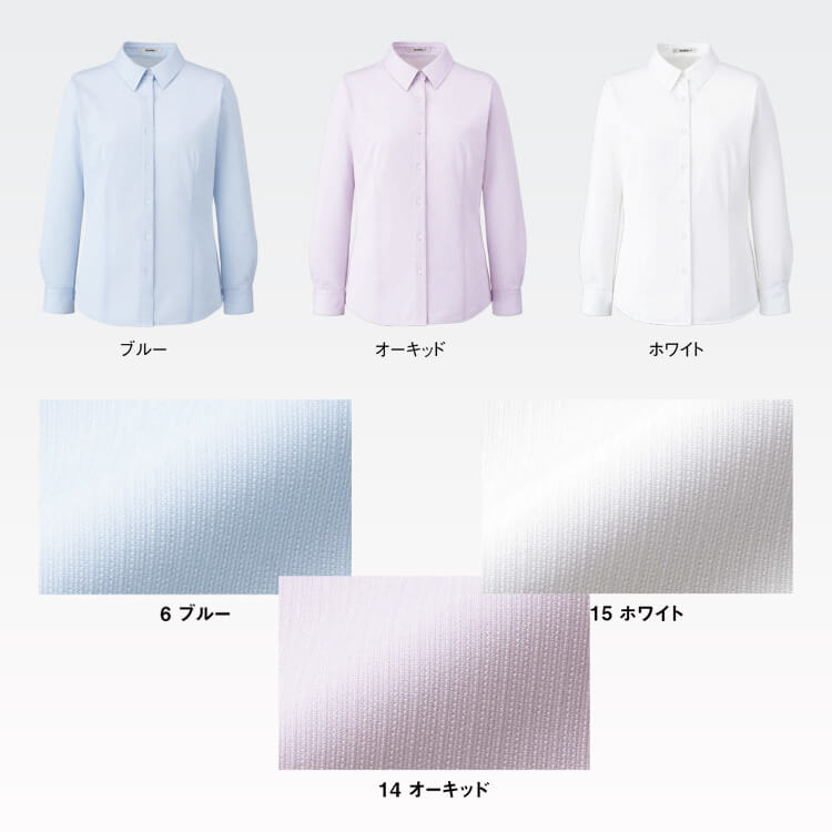 事務服ブラウス長袖・BONOFFICE・RB4174・レディース・オフィス・吸汗速乾・ストレッチ・イージーケア・おしゃれ オフィス制服・長袖ブラウス・レディース・カラー展開・ブルー・オーキッド・ホワイト・事務服