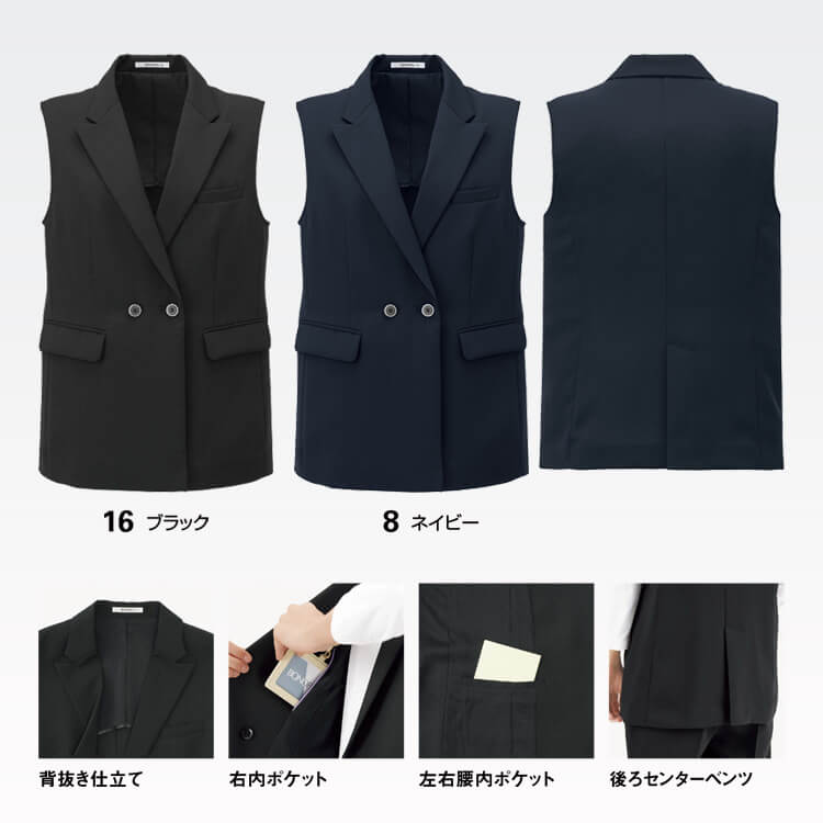 ロングベスト レディース「2WAYストレッチ」ECO素材・オールシーズン / オフィスユニフォーム カラー・詳細